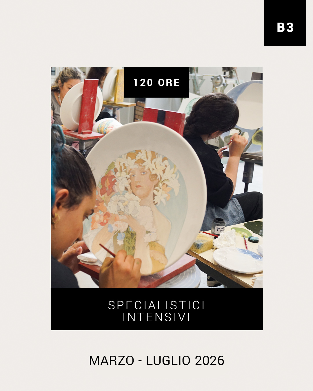 Il corso offre un approfondimento delle tecniche di decorazione ceramica, con particolare attenzione ai decori non tradizionali e al terzo fuoco.